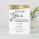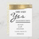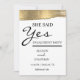 Agregar nombre Ella dijo que sí Invitación de compromiso con brillo dorado