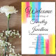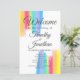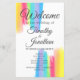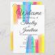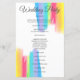 Hermoso programa de bodas en acuarela arcoíris con bonito, pinturas artísticas llenas de color brillante para un evento LGBTQ. Guión elegante y bordes coloridos para traer felicidad a su unión.