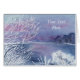 Un paisaje acuático de un estanque de invierno con follaje alrededor esmerilado con hielo adorna esta carta. Personalizar cambiando el texto para que se adapte a ti mismo!