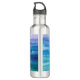 Esta bonita botella de agua tiene un fondo de bonitos tonos azules, verdes y morados como el océano en un paraíso tropical. El texto dice: Agua. Haz Que Sea Tu Nuevo Mejor Amigo.