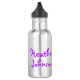 Niños gráficos morados de mariposa beben una botella. Ideal para la escuela, después de los clubes escolares o los viajes fuera. Personalice con su propio nombre infantil que actualmente lee Heather Johnson. Artículo diseñado exclusivamente por Sarah Trett. www.sarahtrett.