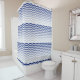 Guay y cortinas de ducha divertidas con un tema de playa/agua. Las cortinas de la ducha están decoradas con un patrón de agua ondulada de color azul y son perfectas para su cuarto de baño de temática azul o de playa.