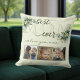 Una almohada elegante con un texto estilizado de mamá con hojas de color verde y tus propias fotos y texto. Hermoso por el Día de la Madre o el cumpleaños de la mamá...