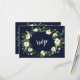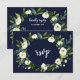 Diseño de tarjeta único y elegante con rosas blancas y peonías pintadas a la acuarela sobre un fondo azul oscuro. ¡Una combinación trendy: blanco (flores y letra) y azul oscuro! En la parte posterior: flechas con un ramo floral blanco, corona floral blanca y tus iniciales. Utiliza la herramienta Personalizar para agregar tu información, cambiar fuentes y colores de fondo. Para artículos coincidentes, visita mi Colección Aguamarina Floral Blanca.