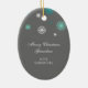 Personalizable del ornamento de la abuela de las Felices Navidad con su propia foto de familia en gris de carbón de leña oscuro elegante, azul de la turquesa y blanco modelo verde azulado de los copos de nieve. Un regalo elegante del navidad para la abuela estas vacaciones.