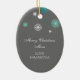 Personalizable del ornamento de la mamá de las Felices Navidad con su propia foto de familia en gris de carbón de leña oscuro elegante, azul de la turquesa y blanco modelo verde azulado de los copos de nieve. Un regalo elegante del navidad para la mamá estas vacaciones.
