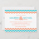 Invitaciones modernas del boda del galón. El naranja de moda de la mandarina y refresca rayas azules del zigzag de la turquesa en el blanco para los bodas casuales del tema de la playa o del destino. Las impresiones populares del modelo de zigzag con signo "&" intrépido y tipografía minimalista moderna elegante se pueden modificar para requisitos particulares como es, o las cosas del movimiento alrededor para crear equipos de bricolaje hermosos de la invitación del boda. Véala en todas las opciones de papel asequibles. Visite nuestra tienda para ver paquetes más únicos del boda en otros tamaños, colores y estilos.
