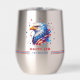 Muestra tu lado patriótico con este diseño de gafas de bebida con un águila audaz con colores de la bandera estadounidense, estrellas y rayas. Personalizable de texto en rojo y azul.