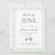 Celebra con estilo atemporal usando esta invitación de primer cumpleaños "Agujero en uno" verde sabio. Con sus suaves detalles de golf acuático, su escudo de monograma clásico y su fondo de gingham, es el lugar perfecto para un fiesta de golf refinado y juguetón.