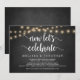 Ahora celebramos, Anuncio de Huida de Boda / Tarjeta de invitación, en pizarra de granja rústica, diseño de luces de cuerda. Esto es perfecto para su recepción de boda y fiesta de celebración después de la boda. Agregue sus detalles en la fuente / letra coincidente.