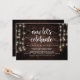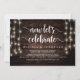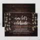 Ahora celebremos, Anuncio de Elopamiento de Boda / tarjeta de invitación, en Madera de granja rústica, diseño de Luces de Cadena. Esto es perfecto para su recepción de boda y fiesta de celebración después de la boda. Agregue sus detalles en letra / letra coincidente.