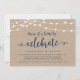 Hermosas Luces de Cadena de Granja Rústica Moderna, fuente de letra Script azul marino en fondo de papel Kraft, Anuncio de Elopamiento de Boda, Tarjeta de invitación (Ahora es hora de celebrar). Esto es perfecto para la recepción de su boda y la fiesta de celebración después de la boda. Agregue sus detalles en la fuente / letra coincidente.
