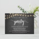Ahora es tiempo de fiesta, Anuncio de boda / Tarjeta de invitación, en pizarra rústica de granja, diseño de luces de cuerda. Esto es perfecto para la recepción de su boda y la fiesta de celebración después de la boda. Agregue sus detalles en la fuente / letra coincidente. #TeeshaDerrick