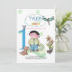Una linda invitación a celebrar el primer cumpleaños, dibujada a mano, con un "hombrecito" con el número 1, un cachorro, una libélula, una flor y un pájaro. (Pix). <br/>() La tarjeta es fácil de personalizar con su texto, tipo de letra, color de letra, opciones de forma de papel y elección de seis tipos de papel.<br/>() ¿No es exactamente lo que buscas? Todos nuestros productos pueden ser personalizados diseñados para satisfacer sus necesidades sin cargo adicional.<br/>() Simplemente contáctenos en askcottonlamb@gmail.com.<br/>Productos de coordinación disponibles: ¡Pásennos!