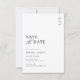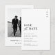 Esta tarjeta de fecha de guardar con foto para boda, elegante y sencilla, presenta una fuente moderna de escritura a mano sobre un fondo negro y blanco crujiente y una foto, dejando que tu amor brille con un toque de sofisticación.