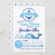 Bienvenido al nuevo niño bebé con una divertida invitación a la ducha con acuarela acuática.