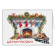 El anverso de esta tarjeta de bienvenida para Navidades tiene una imagen de un perro de Airedale Terrier durmiendo sobre una manta frente a una chimenea decorada, esperando esperadamente a Papá Noel. El texto rojo de abajo dice "Esperando a Santa". El texto es personalizable, como lo es todo el texto interno, así que puedes hacer que diga lo que quieras. ¡Qué lindo! Vea más imágenes terribles, junto con docenas de otros productos de raza de perros, en Dog Village.