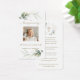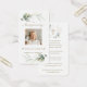 Un homenaje elegante y atento a un ser querido. Esta tarjeta contiene vegetación acuática, follaje eucalipto, hojas falsas de oro delineadas, caligrafía moderna, la foto, sobre fondo blanco. Puedes poner la oración o poema favorito de tu ser querido. Utilice la herramienta Personalize para agregar su información, foto. Por favor, visite mi colección de agradecimientos por la celebración de la vida.