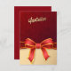 Invitación roja/amarilla que parece un regalo envuelto.