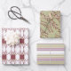 Modeló cualquier envoltura de regalo de papel de ocasión, un trío de patrones en rayas, y diseño con patrones en verde salvia, rosa borgoña y taupe. El color de fondo de cada hoja se puede personalizar a cualquier color.