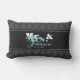 Personalizado Sr. y Sra. al aire libre lanzar almohada estilo elegante. Idea de regalo de boda exterior para recién casados. Personaliza con el nombre de la novia y el novio/marido y mujer. Diseño elegante de patrones con tipografía elegante. Texto del guión. colores azul verde azulado / turquesa, gris, blanco y negro con un patrón de forma de diamante. Decoración de casa para recién casados. Accesorios de jardín para fiesta de patio trasero, patio o terraza.