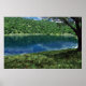 Un lugar tranquilo para descansar, bajo un árbol en la orilla de un lago azul profundo, mirando los reflejos de las nubes y los árboles en el agua rimbombante. Escena 3D creada en Vue.