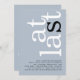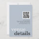 Por fin QR Code Dusty Blue Engagement Party Invitación e invitación. Un diseño tipográfico moderno, con Al menos en una tipografía grande rotada y a la derecha en la parte superior, en blanco con negro para la letra "s" sobre un fondo de azul polvoriento pálido. El color de fondo puede cambiarse a cada lado si se desea a través del Personalizar. Esta versión de la invitación tiene en mente a los fiestas que se realizan en un hotel o restaurante (o cualquier lugar con un sitio web), reemplazar el código QR de la parte posterior por un código QR en su sitio web para que sea conveniente para los huéspedes encontrar direcciones etc. Puede crear códigos QR en línea de forma gratuita. Buscar "creador de código QR" y muchas opciones aparecen para crear de forma gratuita. También puede eliminar el código QR y el texto de la parte posterior si no es necesario a través del personalizar.