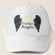 Alas de ángel negro y sombrero de camionero de halo con la palabra "Ángel" en texto negro y personalizado.