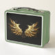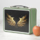 Unas alas brillantes de ángel dorado sobre un fondo oscuro. Alas de oro.