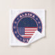 Insignia de Alaska con bandera de Alaska y bandera de los colores de Estados Unidos, forma redondeada. Emblema de Alaska. Sello de Alaska. Colección de Estados Unidos.
