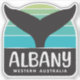 Un diseño atrevido y llamativo que celebra Albany, en la Gran Región del Sur de Australia Occidental. Esta obra de arte cuenta con una llamativa silueta de cola de ballena contra el fondo turquesa del océano.
