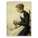 pintura de Albert Anker, Knitting de la joven mujer, tarjeta de saludo.