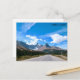 Una pintoresca postal de una carretera con telón de fondo montañoso en Alberta, Canadá