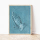 "Albrecht Durer Praying Hands" es un exquisito dibujo de lápiz y tinta del artista renacentista alemán Albrecht Durer, que representa a un par de manos manchadas tenazmente plegadas en oración, que transmiten un profundo sentido de fe y devoción.