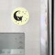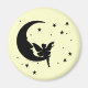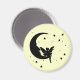 Una silueta de un hada sentada en la luna, rodeada de estrellas. La imagen tiene un fondo transparente, por lo que puede tener el imán cualquier color que desee.