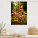Aldea de pan de jengibre en el bosque amazónico con muchos árboles en el fondo. Este es un arte generado por IA.