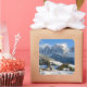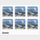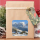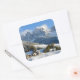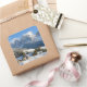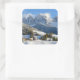Pegatina del pueblo de St. Magdalena (Santa Maddalena) con su iglesia en el Villnoesstal en Tirol del Sur, Italia, en la nieve durante el invierno.