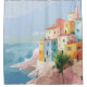 Aldea mediterránea en la cortina de ducha acantila