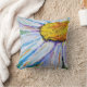 Te encantará esta almohada con los detalles de una margarita pintada en colores vivos amarillos, naranjas, morados, azules y verdes. El centro de la margarita fue pintado sobre lienzo con semilla de mostaza (ver Matt. 17:20: "...con fe tan pequeña como una semilla de mostaza... nada será imposible para ti") para traer esperanza a todos los que la admiran.