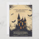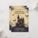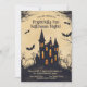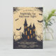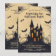 Esta invitación a la fiesta de Halloween presenta un diseño de estilo personalizado que es espeluznante y juguetón. En el centro, una casa espeluznante y embrujada se sienta sobre una colina, con sus rasgos exagerados que le dan un toque de horror. La casa está rodeada de árboles tenebrosos y tenebrosos con ramas alargadas. Los murciélagos con caricaturas, las alas aletargadas vuelan alrededor de la escena, añadiendo a la atmósfera espeluznante y divertida. El fondo está salpicado de tonos amarillos, pasando de unos vivos amarillos brillantes en la parte inferior a unos tonos más profundos y más ominosos en la parte superior, creando un ambiente vibrante pero espeluznante. En la parte superior de la parte delantera, la leyenda dice: "¡Te invitan a una Alegre Noche de Halloween!" La letra lúdica y audaz asegura que el texto se destaque contra el fondo caricaturista. Debajo del pie de foto, hay espacio para los detalles del evento, incluyendo la fecha, hora y ubicación, todos los cuales se pueden personalizar según sus necesidades. Los tipos de letra y los colores son editables, lo que le permite personalizar la invitación para que coincida con el tema de su fiesta. La parte trasera de la invitación continúa con el tema del color amarillento y una sutil versión descolorida de la casa y los árboles personalizados embrujados. Hay espacio adicional en la parte de atrás para texto adicional, que se puede usar para instrucciones especiales, notas divertidas o cualquier detalle adicional como "¡Se fomenta el uso de disfraces!" o "¡Prepárate para divertirte con miedo!" La información de RSVP también se incluye en la parte posterior, lo que le permite especificar detalles de contacto y un plazo de RSVP. Esta invitación combina a la perfección un estilo divertido y caricaturista con información esencial de los fiestas, lo que lo convierte en el lugar ideal para una "Alegre Noche de Halloween".