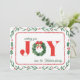Celebra la temporada con esta encantadora tarjeta de Navidad que presenta una exuberante corona de boj adornada con hojas festivas de muérdago en un marco caprichoso. La palabra "JOY" toma el centro del escenario, capturando el espíritu sincero de las fiestas. Con un clásico cuadriculado rojo de nuestra colección Cozy Christmas Plaid en el reverso, esta tarjeta combina la elegancia tradicional con el encanto rústico.