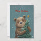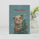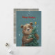 Alegre oso lindo abrazando árbol de Navidad