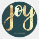 La pegatina personalizada de oro y Navidad verde presenta un guión falso de alegría dorada en un hermoso fondo verde.