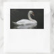 Esta hoja de pegatinas redondos muestra una fotografía de un hermoso cisne blanco. El cisne es un cisne mute. Se ve muy bonito, ya que nada con gracia a lo largo de un río tranquilo.