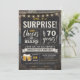 Invitación a los 70 Años de Surprise Cheers and Beers, con pizarra de tiza y carta con edad de personalizar.