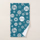 Ilustracion de diseño de texto de alegría para Navidades con decoración de copos de nieve y fondo azul