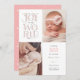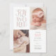 Esta tarjeta de Navidades de anuncio de nacimiento incluye la frase Alegría a nuestro Mundo en letras a mano acentuadas con estrellas junto con dos fotos de su recién nacido y mucho espacio para agregar el nombre del recién nacido y detalles de nacimiento.