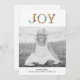 Comparte la alegría de las vacaciones enviando una hermosa y moderna tarjeta de fotos de vacaciones. La simple tarjeta de fotos de Navidad incluye la palabra "Alegría" con hermosa tipografía floral, texto personalizado y foto personalizado. Cree un diseño de tipo que cambie el estilo del tipo de letra, agregando una imagen y más!