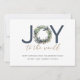 Hermosa y sencilla tarjeta de Navidad Alegría para el mundo que se puede personalizar con tu propio mensaje y nombres. El diseño cuenta con una elegante corona de vegetación en acuarela y en el otro lado de la tarjeta plana hay rayas coordinadas. Puedes usar esto como una tarjeta de Navidad familiar para enviar a amigos y familiares o si puedes usar esto como una tarjeta de vacaciones de negocios de tu empresa.