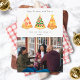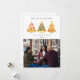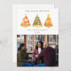 Ilustración de árbol rebanadas de pizza con forma de árbol de Navidad coronadas con estrellas. Personaliza el nombre, año y foto.